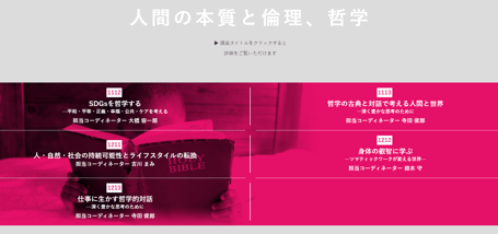 上智大学が社会人向けに提供する「教養講座」の6つの柱の1つ ~「人間の本質と倫理、哲学」。
